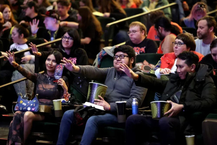△ 《怪奇物语》的粉丝们模仿小11的经典动作,在影院里施展超能力