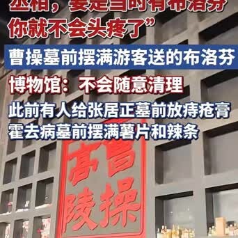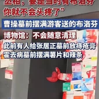 【年轻人组团给曹操送布洛芬,“上坟导游团”火了,一天能逛十几座古墓】这阵子你要是去安阳旅游,走进曹操高陵,没准会以为自己走错了地方。不是飘着香火味,也不是看见什么金碧辉煌的地宫,在供品柜那里,你看到的满墙全是布洛芬。对,就是咱们头疼牙疼吃的那种止痛药。