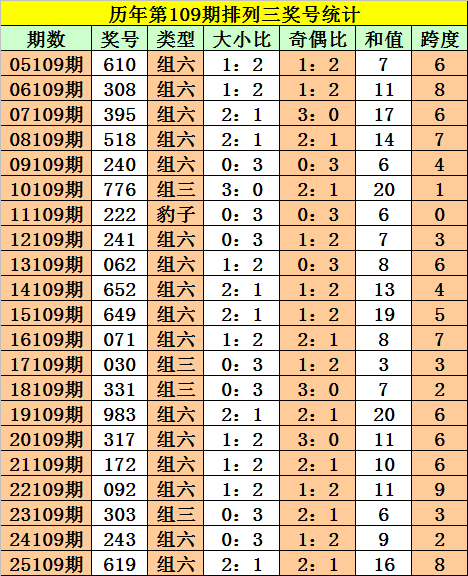 历年第109期排列三奖号:610 - 308 - 395 - 518 - 240 - 776 - 222 - 241 - 062 - 652 - 649 - 071 - 030 - 331 - 983 - 317 - 172 - 092 - 303 - 243 - 619。